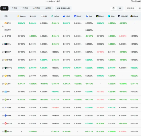1 月 2 日,据 Coinglass 数据,今日部分山寨币种出现上涨行情后,目前主流 CEX、DEX 资金费率显示山寨币市场回暖,部分平台山寨币交易对已回归中性费率,但随着比特币再次接近 9 万美元阻力,市场开始重新看空,目前暂未进入负费率区间。这与此前行情低迷时的情况相反(BTC、ETH 中性费率,山寨币全面负费率),具体主流币种资金费率如附图所示。(手机可以挖哪些虚拟币)