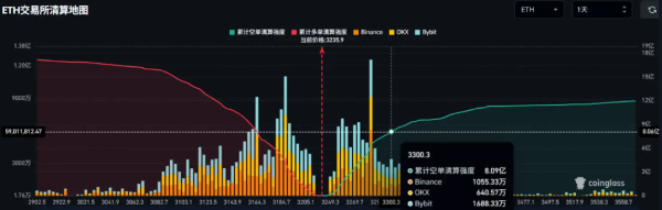 1 月 6 日,据 Coinglass 数据,若以太坊突破 3300 美元,主流 CEX 累计空单清算强度将达 8.09 亿。(全球十大交易货币排名)