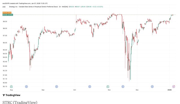 延展 (STRC),由战略控股公司(MSTR)发行的永久优先股,战略控股是最大的比特币(BTC)企业持有者,该股票在盘前交易中首次自十一月初以来重新回升至100美元,为通过销售筹资以购买更多比特币打开了大门。