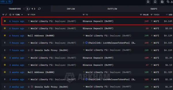 1 月 7 日,(国内币圈五大交易所)据 onchainschool.pro 监测,6 小时前,价值 410 万美元的 WLFI 代币被转移到 Binance。这些代币此前已从 WLFI 战略储备钱包中提取,现在正被转至 CEX。(国内币圈五大交易所)