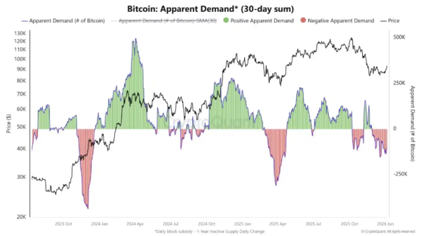 1 月 7 日,(币圈三大交易所哪个最好)CryptoQuant 分析师 caueconomy 发文表示,即使比特币价格重新回到 93.000 美元以上,但链上需求表现依然疲弱,需要更强烈的复苏才能支撑价格重返 100.000 美元。(币圈三大交易所哪个最好)
