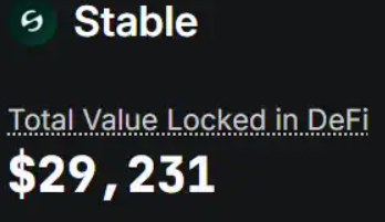 Stable DeFi TVL 达到了匪夷所思的 29.231 美元,此前位于 1 亿美元上方;