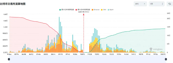 1 月 9 日,据 Coinglass 数据,若比特币跌破 8.9 万美元,主流 CEX 累计多单清算强度将达 11.27 亿。