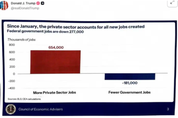 该图表显示,自今年 1 月以来,美国私营部门新增 65.4 万个就业岗位,政府部门减少 18.1 万个岗位。相关数据原定于周五随 12 月非农就业报告一并由美国劳工部正式公布。白宫随后回应称,此次披露属「无意行为」,并表示将审查经济数据发布与禁运协议。