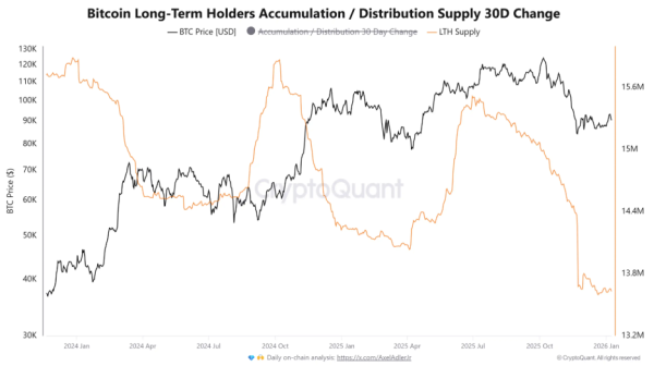 1 月 10 日,分析师 Biraajmaan Tamuly 表示,比特币长期持有者(LTH)在 2025 年经历了有记录以来最激进的抛售阶段。尽管其抛售规模曾引发市场震荡,链上数据分析显示这种压力可能正在消退,或许正为 BTC 价格勾勒出下一轮上涨周期的轮廓。