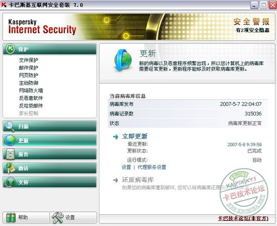 卡巴斯基全功能安全软件2010中包含卡巴斯基反病毒软件 2010的所有功能和技术,是新一代的信息安全解决方案,更强的反病毒数据库引擎和更快的扫...