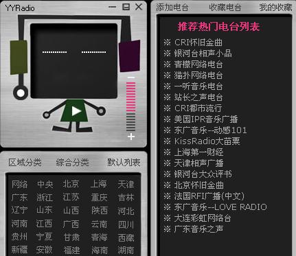 YYRADIO网络电台是一款为音乐发烧友和网络广播爱好者度身打造的一款精巧超小型的免费电台软件,软件大小仅有196KB,纯绿色,无插件,无广告,无需...