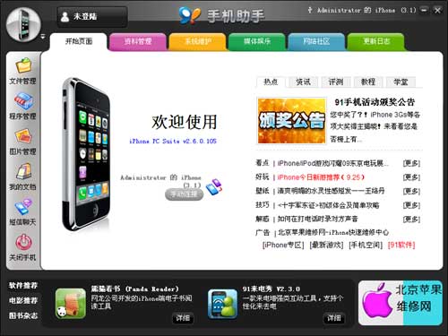 | · 91手机助手是由网龙公司推出的智能手机PC端管理工具,全面支持iPhone/WindowsMobile/Symbians60/Android的手机,十分便捷地对手机进行管理。只要拥...