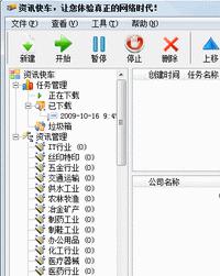 资讯快车2010是一款完全免费的,支持从国内外几乎所有的类似B2B的商务网站中下载客户资料的软件,类似讯雷下载软件的操作风格,真正简单易用,想下就下,要多少有多少,而且还支持对下载后数据的分析、过滤和管理功能,是您开展电话营销、邮件营销、等精准营销的推广的必备软件