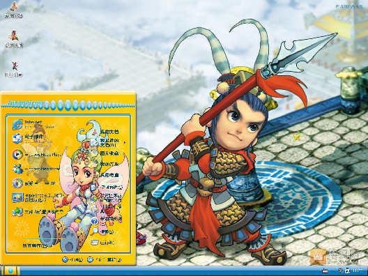 专为所有喜好《梦幻西游》的网游迷们精心定制,包括壁纸(1280*1024分辨率)和5个基本桌面图标,精致鼠标指针。另外还包含游戏开关机音乐,以及精彩的登陆界面等。